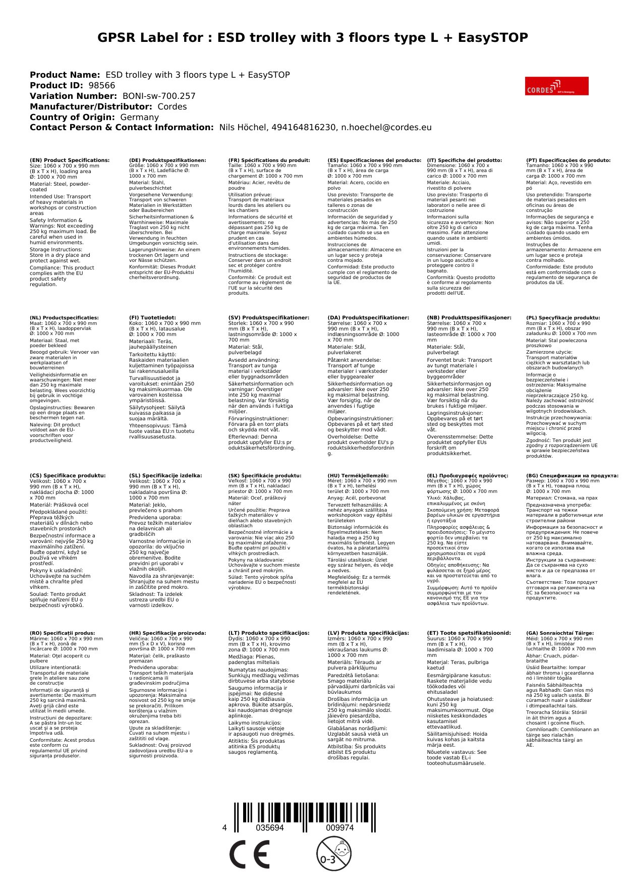 Der ESD Etagenwagen ist nicht nur ein einfacher Wagen, sondern eine durchdachte Lösung für den sicheren Transport von empfindlichen Bauteilen. Er bietet eine Traglast von 250 kg und eine Ladefläche von 1000 x 700 mm pro Boden. Seine Gummibereifung sorgt für einen ruhigen Lauf und schützt empfindliche Böden. Dieser Wagen ist pulverbeschichtet und aus elektrisch leitfähigem Material gefertigt, was ihn ideal für den Einsatz in ESD-geschützten Bereichen macht.