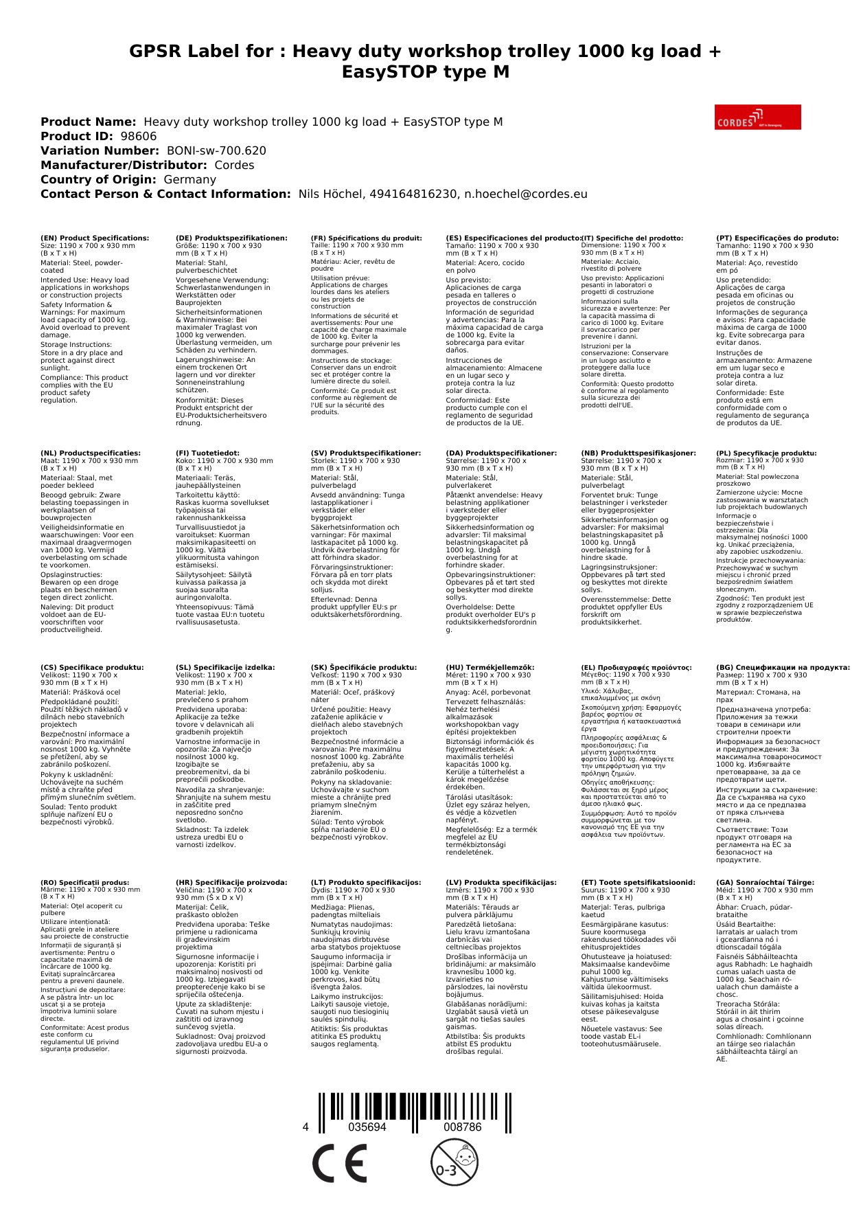 - Hohe Traglast: Mit einer Traglast von 1000 kg kannst du auch schwere Werkzeuge und Materialien problemlos transportieren.