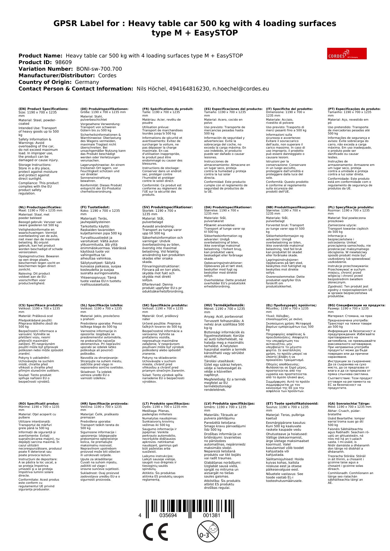 | Ladefläche (B x T) | 1000 x 700 mm |