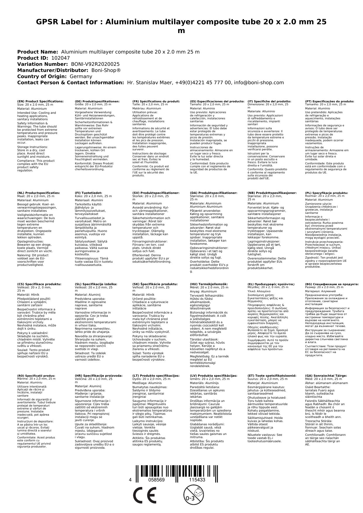 Verbundrohr 20mm, Alu Verbundrohr 25m, Heizungsrohr, Mehrschichtverbundrohr