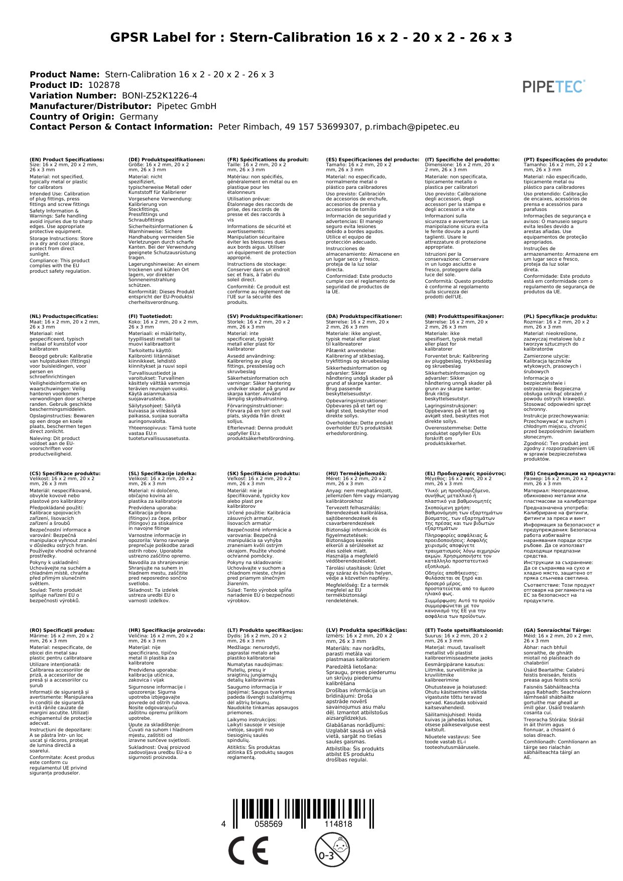 Der Kalibrierer ist speziell für die genannten Größen (16 x 2 mm, 20 x 2 mm und 26 x 3 mm) konzipiert.