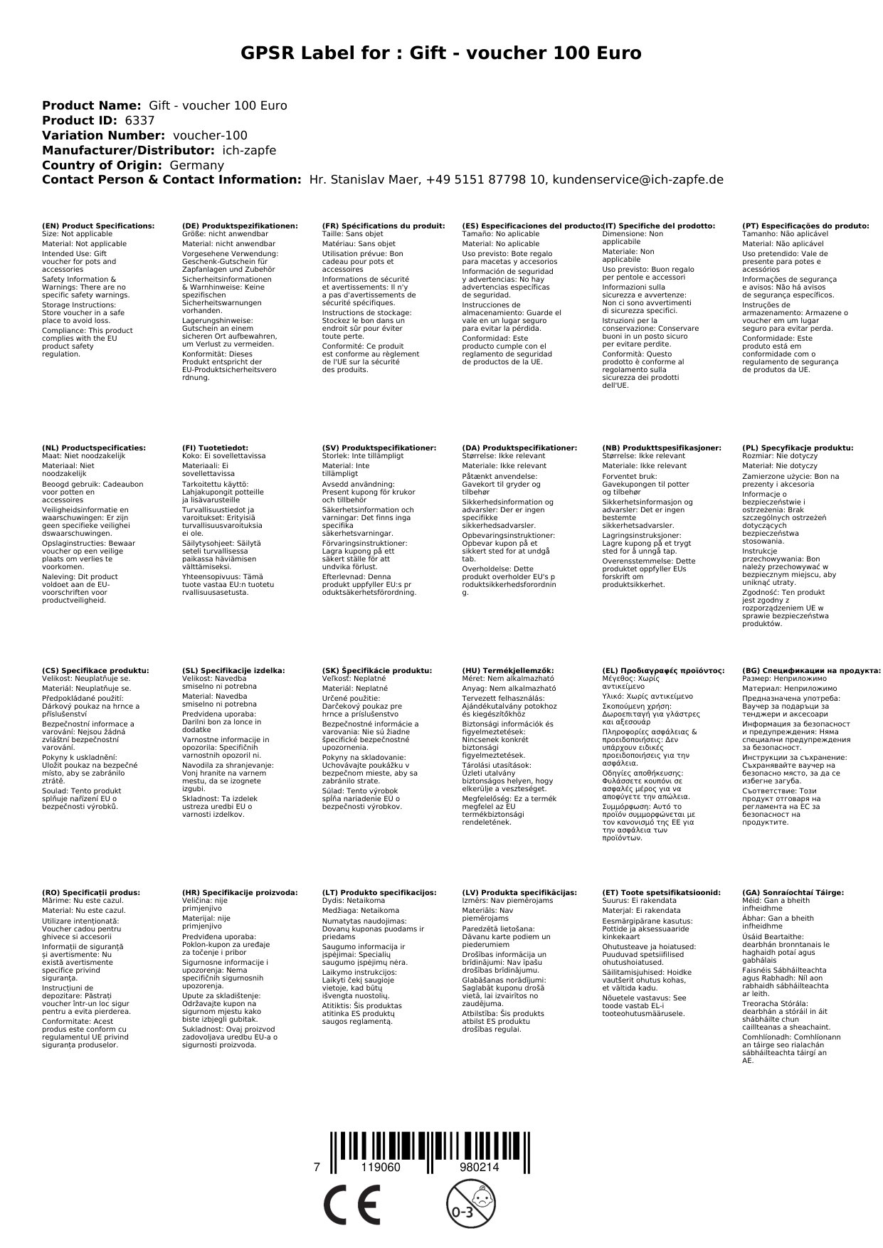 Stellen Sie eine Frage, um mehr über das Produkt zu erfahrenGeschenk - Gutschein 100 Euro